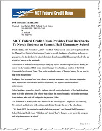 - Manna Food works with MCT Federal Credit Union to Provide Food Backpacks to Needy Students
